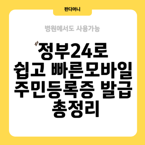 모바일 주민등록증은 우리의 삶을 더욱 편리하게 만들어주는 중요한 변화입니다. 아직 신청하지 않으셨다면, 지금 바로 정부24에 접속하거나 가까운 주민센터를 방문해 신청해 보세요. 더 이상 무거운 지갑에 신분증을 따로 챙길 필요 없이, 스마트폰 하나로 어디서나 본인 인증이 가능합니다.